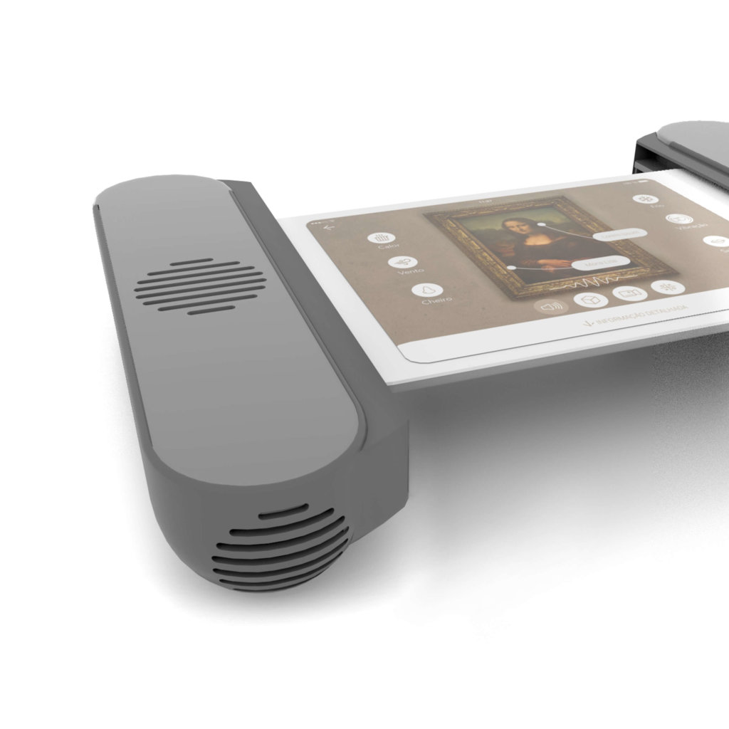 O dispositivo AMtop, integra 3 dos 5 sentidos humanos, com características fundamentais, que envolvem e seduzem os utilizadores numa experiencia de visita totalmente imersiva. Este dispositivo cria sensações de tato, apresenta micro dispersores de cheiro, com fragâncias adequadas a cada objeto e permite aceder a sabores vaporizados. O equipamento é provido com um sistema individual de doseamento, cumprindo todos os critérios de higiene e segurança.